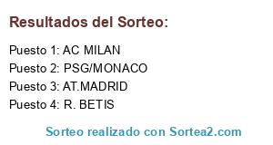 Lista de participantes: AC MILAN, AT.MADRID, PSG/MONACO, R. BETIS.