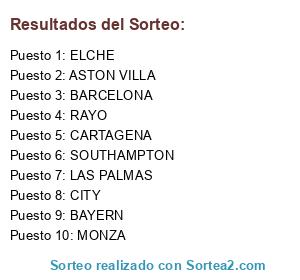 Lista de participantes: CITY, BARCELONA, LAS PALMAS, SOUTHAMPTON, ELCHE, MONZA, ASTON VILLA, CARTAGENA, BAYERN, RAYO.