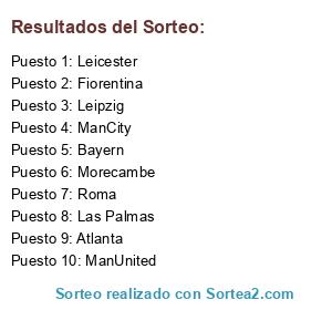 Lista de participantes: Bayern, Leicester, Roma, Las Palmas, ManUnited, Morecambe, ManCity, Leipzig, Atlanta, Fiorentina.