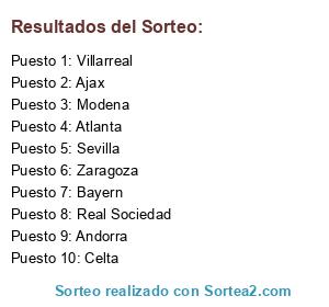 Lista de participantes: Ajax, Atlanta, Modena, Bayern, Celta, Sevilla, Andorra, Villarreal, Zaragoza, Real Sociedad.