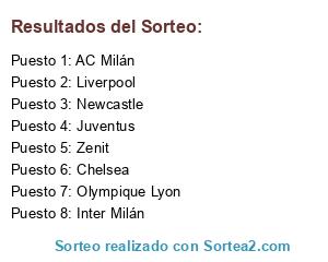 Lista de participantes: AC Milán, Inter Milán, Liverpool, Olympique Lyon, Chelsea, Newcastle, Zenit, Juventus.
