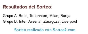 Lista de participantes: Inter, Barça, Liverpool, Zaragoza, Tottenham, Milan, Betis, Arsenal.