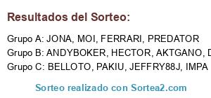 Lista de participantes: PREDATOR, FERRARI, MOI, DANI, ANDYBOKER, BELLOTO, IMPA, AKTGANO, JONA, HECTOR, JEFFRY88J, PAKIU.
