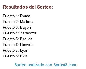 Lista de participantes: Mallorca, Roma, Basilea, Lyon, Zaragoza, Bayern, Newells, BvB.