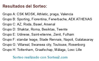 Lista de participantes: Arsenal, Swansea city, Tottenham, Fulham, Losc Lille, Toulouse, Stade Rennais, Saint-etienne, Roma, Fiorentina, Napoli, Udinese, Twente, AZ, Graafschap, Roda, Málaga, Athletic, Villareal, Valencia, Shaktar, Galatasaray, Fenerbache, Besiktas, Basel, Zenit, Sporting, CSK MOSK, AEK ATHENAS, standar leage, praga, Rosenborg.