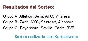 Lista de participantes: BVB, Cadiz, Feyenoord, Betis, Stuttgart, Zenit, Sevilla, AFC, Alcorcon, NYC, Atletico, Villarreal.