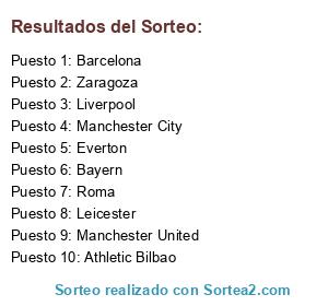 Lista de participantes: Manchester City, Roma, Liverpool, Athletic Bilbao, Bayern, Barcelona, Manchester United, Zaragoza, Everton, Leicester.