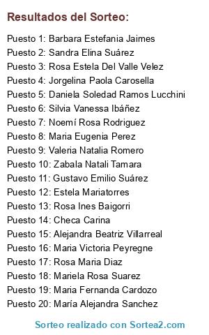 Lista de participantes: Nancy Gabriela Orso, María Belén Martinelli, Emiliana Soledad Ruben, Evangelina Bayona, Miriam Damiani, Cristina Andrea Olguin, Mauro Jesus Vasquez, Maria Laura Soler, Soledad Andrea Garcia, Sandra Monica Del Bosque, Alejandra Beatriz Villarreal, Jesica Yanina Ramirez, Lucas Sebastián Genise, Marta Lorena Torres, Mariana Elizabeth Bacri, Melisa Abigail Pérez Medina, Ricardo Alberto Lupino, Laura Susana Moyano, Sofia Daniela Gonzalez, Gisela Martínez, Paula Daniela López, Verónica Solis, Carolina Barretto, Noelia Andrea Faricelli, Nidia Janet Noleff, Vanina Cisneros, Evelia Noemi Butassi, Marcela Nancy Torres, María Carolina, Luciana Vanesa Calarco, Checa Carina, Viviana Grabriela Del Valle Rodriguez, María Fernanda Alvarez, Fabiana Elizondo, Zulema Bonanno, Hugo Eduardo Heredia, Maria Jose Cornejo, Luciana Gardella, Maria Noel Meléndez, Cecilia Ayala, Natalí Mella, Patricia Carolina Castro, Gabriela Del Carmen Soto, Segura Ana María, Inés Andrea Arillo, Andrea Silvana Soto, Mariangel Arillo, Roxana Mabel Rodriguez, Marina Rita Rodriguez, Estela Mariatorres, Carmen Beatriz Abataneo, Sandra Susana Santandrea, Elizabeth Beatriz Fatima Menéndez, Carina Elizabeth Sanchez, Daniela Elizabeth Chaparro, Laura Verónica Vargas, Gladys Matar, Gabriela Iris Bernini, Alexandra Eliana Soto, Valeria Natalia Romero, Victoria Alejandra Bidela, Patricia Alejandra Sánchez, Maria Celeste Rinaldi, Yanina Vanesa Goldbaum, Rosana Leticia Martinez, Sonia Marisa Torres Roasenda, Pablo Eugenio De Santo, María Fernanda Molina, Mauro Javier Albang, Gabriela Beatriz Garcia, Iris Marisel Biasucci, Claudia Raquel Vargas, Maria Laura Perez, Silvia Cristina Candan, Gisela Deomar Barnes, Romina Vanesa Coppola, María José Tourn, Griselda Carina Vélez, Rosana Mercedes Giordano, Analía Raquel Barberis, Noemí Rosa Rodriguez, Claudia Lucia Ferreyra, Pablo Javier Paz Carabajal, Maria Ana Ruiz, Silvia Del Valle Conti, Cecilia Garci, Erica Rosana Azar, Viviana Del Carmen Mercado, María Luz Casal, José Luis Baigorria, Silvia Vanessa Ibáñez, Verónica Alejandra Ramírez, Andrea Butassi, Cecilia Florencia Martínez, María Alejandra Palacio, José Alejandro Dominguez, Marisa Alejandra Gutierrez, Carmen Isabel Estigarribia, Gloria Ynés Monzón, Víctor Hugo Luna, Dora Beatríz Cornejo, María De Los Ángeles Muiños, Silvia Beatriz Ponce, Marcela Valeria Chávez, Cecilia Fabiana Báez, Miriam Alicia Semes, Mercedes Ignacia Barberis, María Teresa Luna, María Del Pilar Sosa, Braian Daniel Solis, Viviana Marcela Quiroga, Jorgelina Paola Carosella, Claudia Noemí Pincciroli, Rosa Ines Baigorri, Evangelina Reartes, Marcela Dolly Arese, Maria Eugenia Perez, Lucas Hernán Martinez, Norma Gloria Torres, Luisa Fernanda Arceo, Mónica Elisabeth Saade, Silvana Analia Sosa, Brenda Vanina Gomez, Marisa Fabiola Gómez, Patricia Alejandra Fernández, Mariela Rosa Suarez, Nelly Elizabeth Andrada, Elsa Del Valle Stoll, Ivana Valeria Amaya, Carmen Elizabeth Moyano, Corina Lucrecia Riera, Pablo Daniel Balancini, Maria Belen Aguero, Zabala Natali Tamara, Laura Tonfi, Laura Cristina Módica, Leandro Cañete, Lorena Itati Lencina, Ivana Andrea Farias, Milena Del Valle Maldonado, Veronica Paola Sanchez, Jorge Omar Fortuzzi, Mariana Guiñazu, Lucia Clara Gotta, María Alejandra Vázquez, Carolina Olga Maldonado, Claudia Mabel Sanchez, Raquel Inés Ateca, Edidt Margarita Laura Ferrarese, Monica Susana Rodriguez, Pablo Sebastian Menendez, Cintia Anahí Jiménez, Valeria Nicoletti, Ramona Beatriz Sosa, Lorena Marchesi, Silvia Maria Elisa Butassi, Fernanda Purita, Maggi Margarita Maria De Las Mercedes, Cristian Gastón Martin Brito, Stella Maris Romero, Viviana Beatriz Picco, Rosa Estela Del Valle Velez, Daniela Cecilia Nicolino, Exel Domínguez, Griselda González, Alicia Anabel Carruccio, Nancy Edi Urquiza, Cintia Roxana Quintas, Natalia Veronica Albang, Amanda Del Carmen Lopez, Marcela Dora Cuevas, Marcelo Enrique Ramos, Claudia Marcela Monticello, María Margarita Gondell, Barbara Estefania Jaimes, Maria Adriana Gonzalez, Silvia Maria Bruera, Ruth Karina Russo, Norma Beatriz Ruiz, Sandra Lorena Díaz, Viviana Mercado Del Carmen, Sandra Rosa Bella, Mónica Margarita Poretti, Raquel María Margarita Bitar, Sandra Elina Suárez, Rosa Maria Diaz, Gloria Mora, Liliana Mabel Homann, Claudia Edith Quiroga, Andrea Paola Martinez, Adriana Patricia Oviedo, Alicia Del Valle Velez, Monica Nelida Villarreal, María Laura Alfonso, Patricia María Fucaraccio, María Urbana Moyano, Dora Olga Farías, Veeonica Alejandra Chaparro, Sandra Rosana Saez, Elizabeth Perren, Aracelli Noelia Amaya, Maria Elena Lopez, Daniela Soledad Ramos Lucchini, Brenda Soledad Godoy, Ivana Alejandra Lopez, Liliana Isabel Becerra, Nora Patricia Alarcon, Jose Luis Verrastro, María Juliana Molina, Natalia Valeria Zucco, José Maximo Marin, Mariela Karina Guzman, Martín Vaglica, Cecilia Lopez, Maria Victoria Peyregne, Olga Sandra Olmedo, Valeriano Juez, Alejandra Noemi Koeter, Erica Valeria Acuña, María Alejandra Sanchez, Silvia Alicia Alvarez, Sonia Raquel Martínez, Esther Elena Maldonado, Elsa Elvira Gaggero, Antonio Tomás Sarasin, Norma Pino, Liliana Perino Actis, Maria Fernanda Cardozo, Mirta Alicia Videla, Gabriela Del Rosario Loncar, Maria Laura Aguilera, Monica Susana Ballesta, Susana Beatriz Sánchez, Martha Susana Jaime, Yanina Andrea Furbatto, Analia Del Valle Azar, Inés Del Valle Krsul, Estela Del Milagro Baccili, Nelly Diviu, Ines Recabarren, Ana María Ressia, Gustavo Emilio Suárez, Sandra Fanny Badellino, Cristina Del Valle Martos.