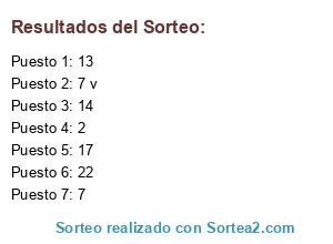 Lista de participantes: 14, 2, 7 v, 17, 22, 13, 7.