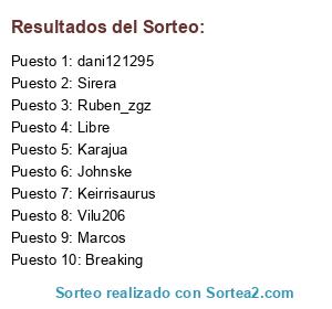 Lista de participantes: dani121295, Ruben_zgz, Johnske, Vilu206, Breaking, Sirera, Keirrisaurus, Marcos, Karajua, Libre.