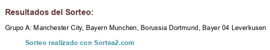 Lista de participantes: Bayer 04 Leverkusen, Manchester City, Borussia Dortmund, Bayern Munchen.