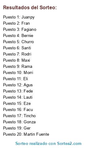 Resultados del sorteo: