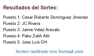 - Puesto 1: Cesar Roberto Dominguez Jimenez