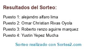 - Un paseo para con su respectivo acompañante por 100 pokeparadas en Lima. (Solo en caso el ganador no confirme su asistencia): Roberto renzo aguirre marquez