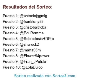 Lista de participantes: @sharuck2 , @Fran_JPulido , @Bjonic , @EduRomma , @cristobaltroba , @marta93m, @estebancupe , @DanielRosa35 , @carlitosmlg , @antoniojggmlg , @LolaDulop , @SobredosisHDPro , @Flower94power , @franktony88 , @tipmlg09 , @juananparra.