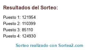 Lista de participantes: Sorteo realizado sobre un fichero que contiene 64.250 participantes.