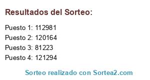 Lista de participantes: Sorteo realizado sobre un fichero que contiene 65.521 participantes.