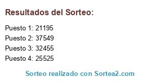 Lista de participantes: Sorteo realizado sobre un fichero que contiene 37.400 participantes.