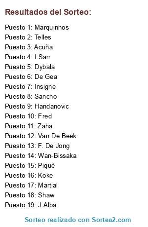 Lista de participantes: De Gea, Handanovic, Marquinhos, Piqué, Wan-Bissaka, Shaw, Telles, Acuña, Fred, Koke, F. De Jong, Van De Beek, Dybala, Zaha, Sancho, I.Sarr, Insigne, Martial, J.Alba.