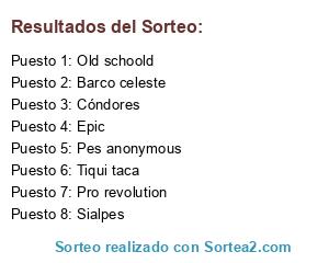 Lista de participantes: Cóndores, Old schoold, Epic, Pro revolution, Barco celeste, Tiqui taca, Sialpes, Pes anonymous.