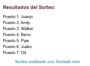 Lista de participantes: Juako, Andy, Juanjo, Oti, Berru, Walker, Pipe.