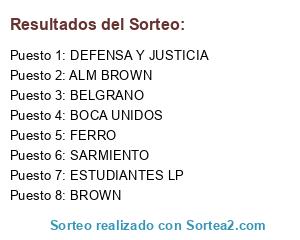 Lista de participantes: BOCA UNIDOS, FERRO, BELGRANO, ESTUDIANTES LP, ALM BROWN, DEFENSA Y JUSTICIA, BROWN, SARMIENTO.