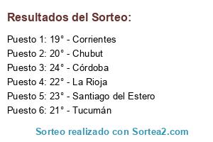 Lista de participantes: 19° - Corrientes, 20° - Chubut, 21° - Tucumán, 22° - La Rioja, 23° - Santiago del Estero, 24° - Córdoba.