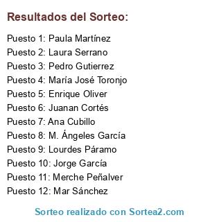 Resultados del sorteo: