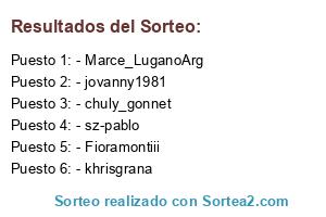 Lista de participantes: - khrisgrana, - Marce_LuganoArg, - sz-pablo, - chuly_gonnet, - jovanny1981, - Fioramontiii.