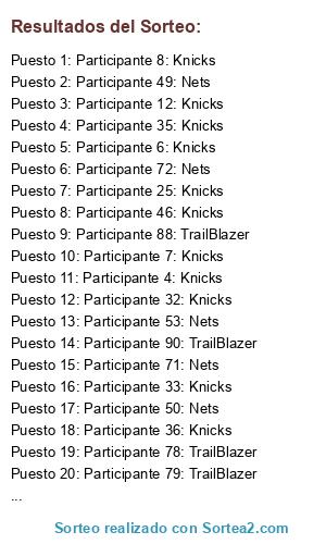- Puesto 1: Participante 8: Knicks
