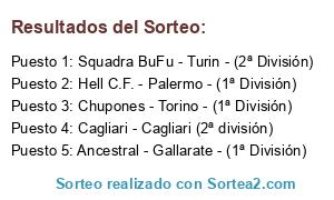 - Puesto 1: Squadra BuFu - Turin - (2ª División)