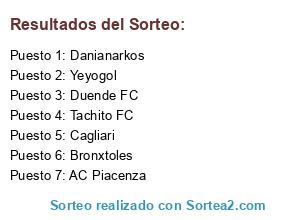 Lista de participantes: Duende FC, Danianarkos, Bronxtoles, Tachito FC, Cagliari, Yeyogol, AC Piacenza.