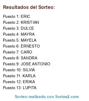 Lista de participantes: DULCE, MAYELA, KRISTIAN, ERIC, MAYRA, LUPITA, JOSE ANTONIO, ERNESTO, CARO, SANDRA, ERIKA, KARLA, SILVIA.