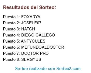 Lista de participantes: ANTYCULES, DIEGO GALLEGO, JOSELE07, DOCTOR PRO, MEFUNDOALDOCTOR, NATCH, FOXARYA, SERGYUS.