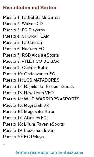 Lista de participantes: ARLES WILKINSON CF, Atlantics FC, ATLÉTICO DE BAR, Black Panthers, DISTRITO SUR, FC Playeros, FC Pelayo, Godenzonen FC, Gudaris Bulls, Hackers FC, Inazuma Eleven, La Bellota Mecanica, La Cuenca, Lilium Raven eSports, LOS MATADORES, Magos del Balón, New Team VFO, OnZe De GaLa, Ragnarök VK, Rápido de Bouzas eSports, RSD Alcalá eSports, SANSE eSports, Santander BayGaming, SPARTAN GALAXY, SPORK TEAM, Tahona CF, WILD WARRIORS eSPORTS, Wolves CD.