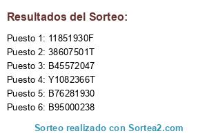 Este sorteo ha sido certificado por Sortea2. Sortea2 garantiza que: