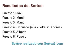 Lista de participantes: Pepelu, Marti, Alberto, Javi, Mario, Sr.hueco (a la vuelta sr. Andres).