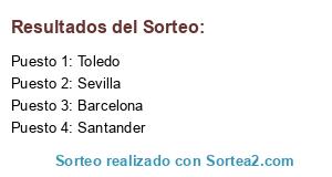 Lista de participantes: Barcelona, Sevilla, Santander, Toledo.