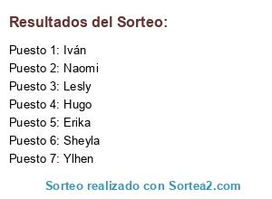 Resultados del sorteo: