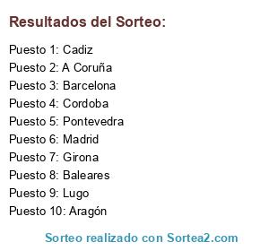 Lista de participantes: Pontevedra, Girona, Cadiz, A Coruña, Cordoba, Barcelona, Lugo, Aragón, Baleares, Madrid .