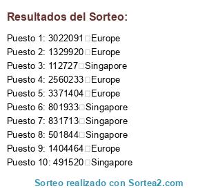 Resultados del sorteo: