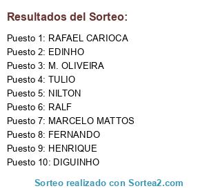 Lista de participantes: TULIO, HENRIQUE, RALF, MARCELO MATTOS, M. OLIVEIRA, EDINHO, DIGUINHO, FERNANDO, NILTON, RAFAEL CARIOCA.