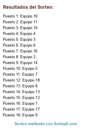 Resultados del sorteo: