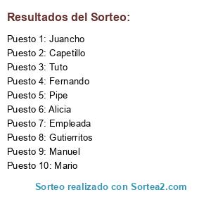 Resultados del sorteo: