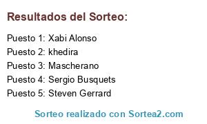 Lista de participantes: khedira, Xabi Alonso, Steven Gerrard, Mascherano, Sergio Busquets.