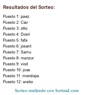 Lista de participantes: manzur, arabo, Ciar, Samu, Dosri, josant, jose, mendopa, viod, otto, paez, fafa.