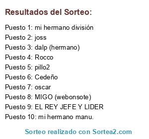 Lista de participantes: Cedeño, Rocco, mi hermano división, oscar, MIGO (webonsote), pillo2, joss, EL REY JEFE Y LIDER, dalp (hermano), mi hermano manu..