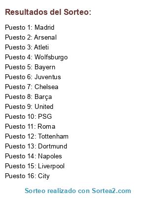 Lista de participantes: Madrid, Barça, Atleti, Bayern, Dortmund, City, United, Tottenham, Liverpool, Arsenal, Wolfsburgo, Juventus, Roma, Napoles, PSG, Chelsea.