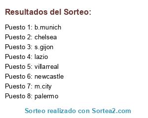 Lista de participantes: newcastle, palermo, chelsea, lazio, b.munich, m.city, s.gijon, villarreal.