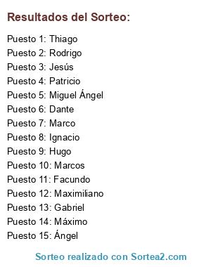 Resultados del sorteo: